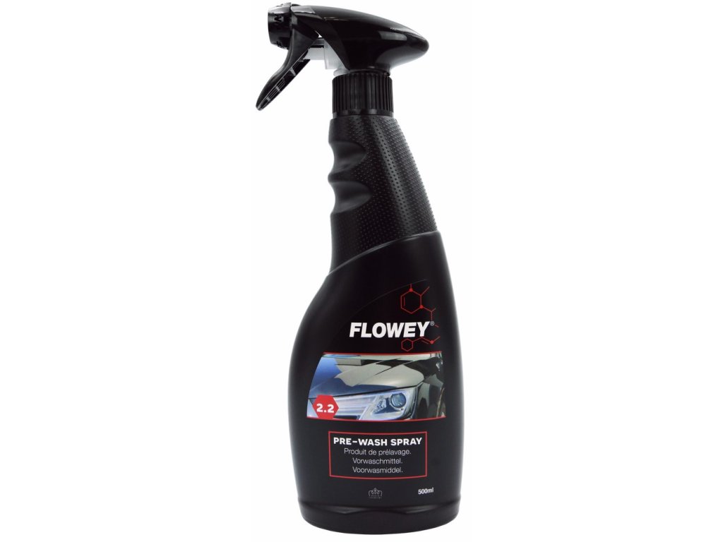 Pro předmytí použij tento sprej FLOWEY Pre-Wash. Univerzální čisticí prostředek speciálně navržený k účinnému předmytí a rozpouštění organických látek a odolných nečistot na povrchu vozidla. Jedná se o základní přípravek před mytím, který připraví vozidlo na důkladné čištění a mytí.