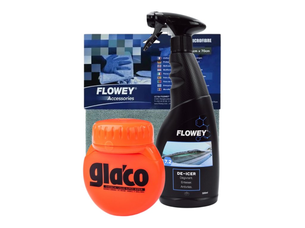 Připrav své auto na zimu! Balíček obsahuje tekuté stěrače pro perfektní výhled, rozmrazovač oken, který zatočí s ledem během vteřin, a kvalitní mikrovláknovou utěrku pro finální dokončení čistého výhledu.