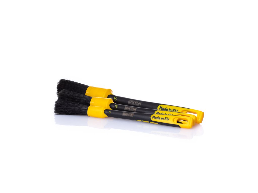 Odolný detailingový štětec s gumovou rukojetí, který zvládne i náročné čištění.